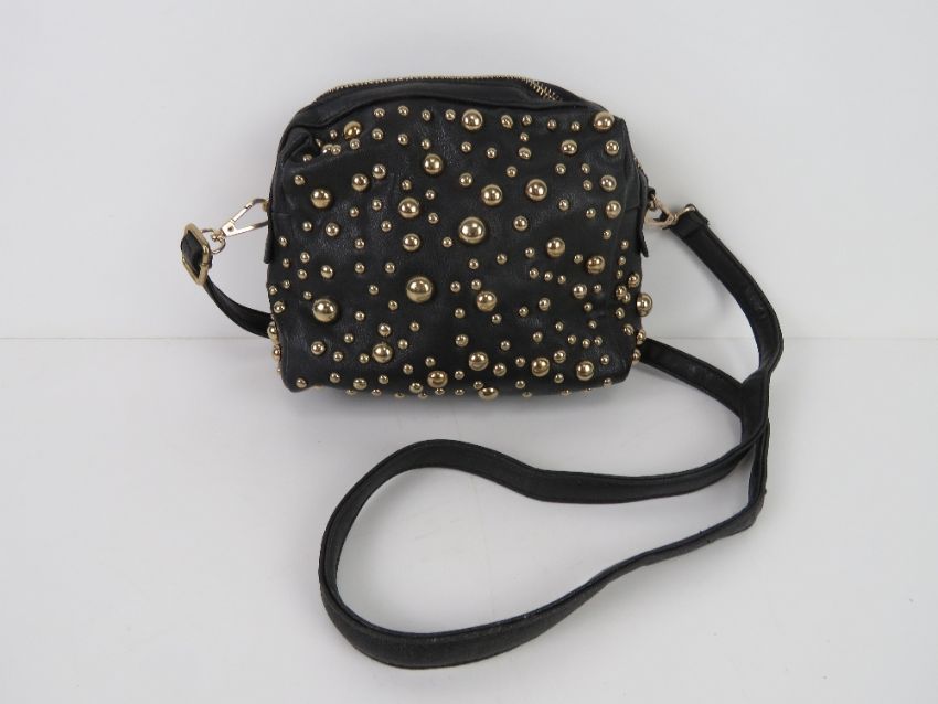 A black handbag with stud decoration 'as new', approx 20 x 17cm.