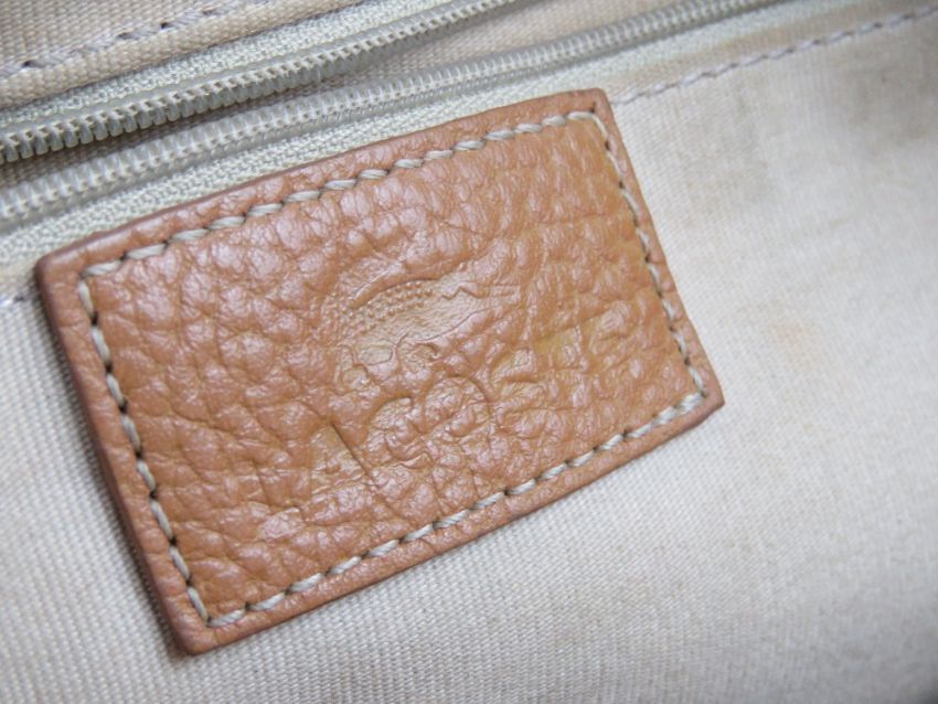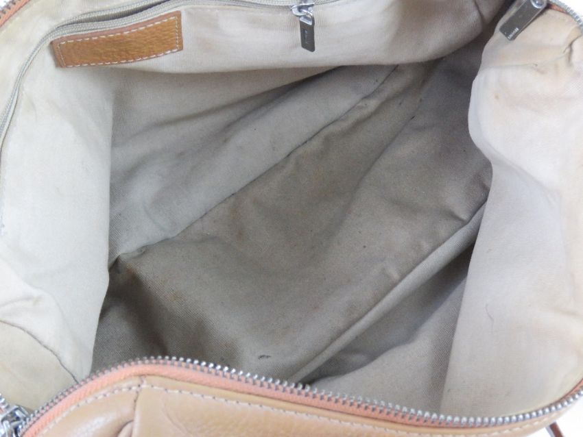 Lacoste; a sand coloured leather handbag, mark noted, 35cm wide.