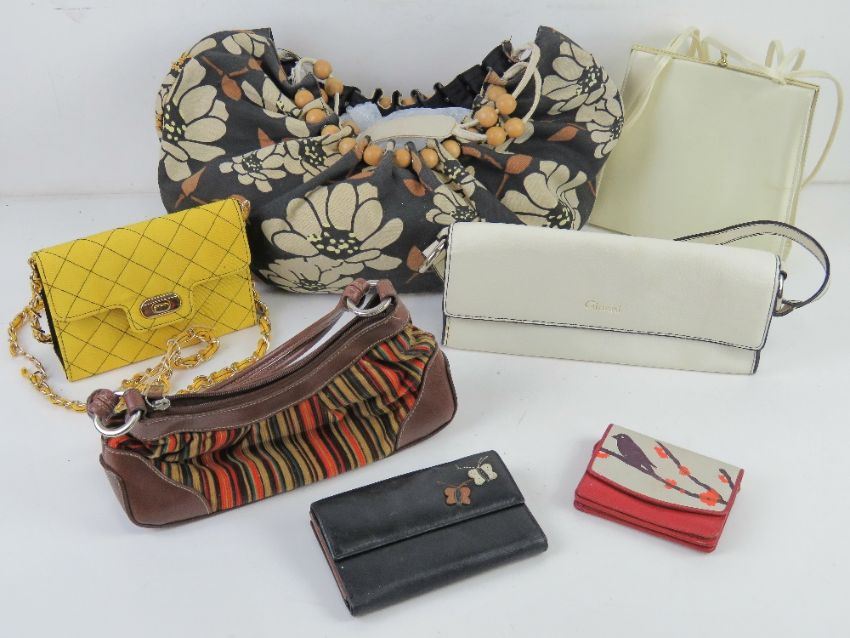 Five assorted handbags inc Gionni. Together with two leather purses.