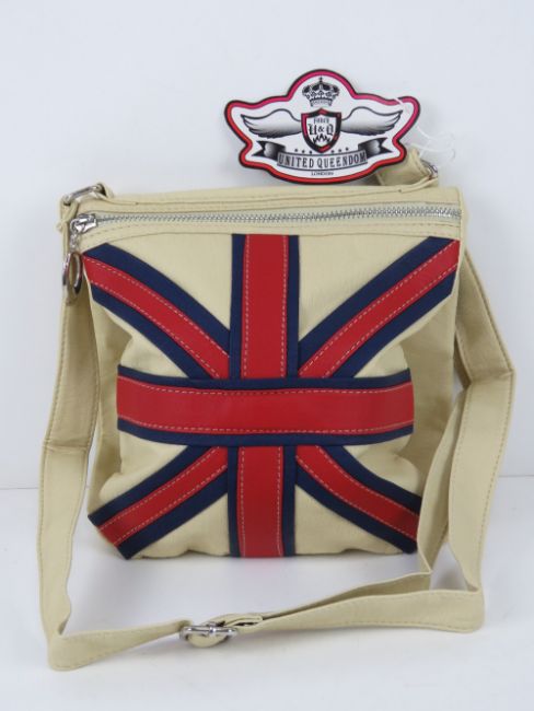 A Union Jack pattern cross body bag in cream ground 21 x 24cm.