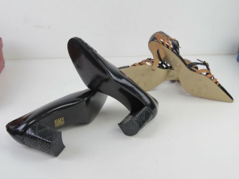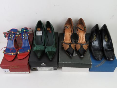 Four pairs of size 5 ladies shoes, three pairs being leather.