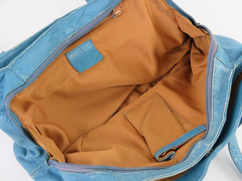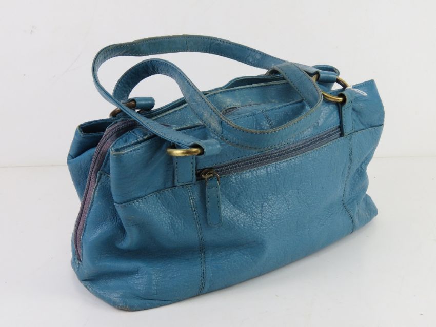Tommy & Kate; blue leather handbag, some scuffs noted to corners, 33cm wide.