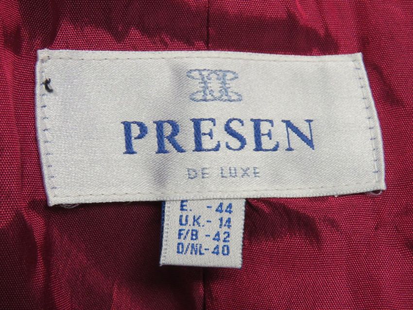 A cranberry coloured velvet trouser suit size 14 UK, as new with tags upon, RRP £345.