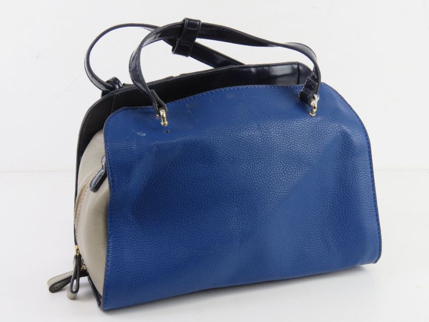 A blue and grey leather handbag by Clarks approx 31cm wide.