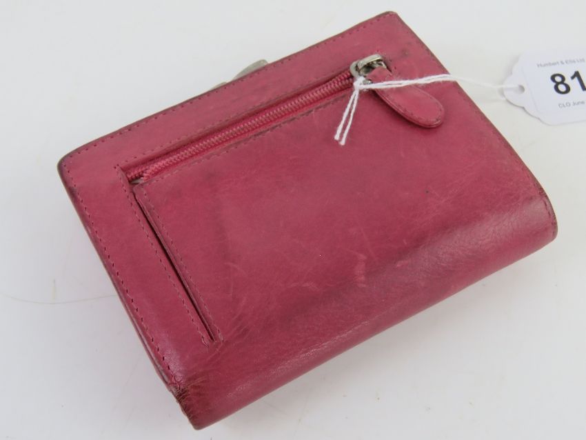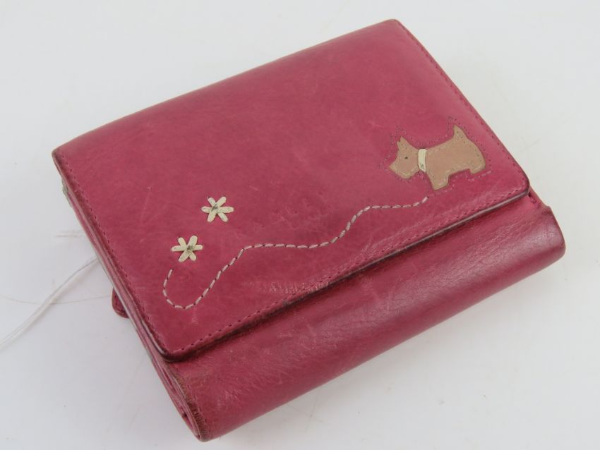 A pink leather Radley purse/wallet, approx 12cm wide.