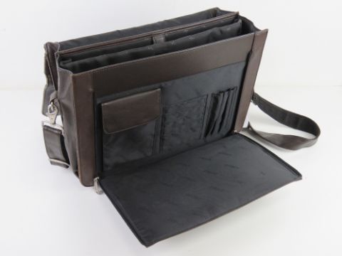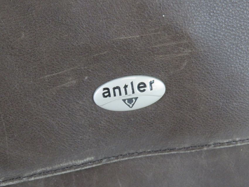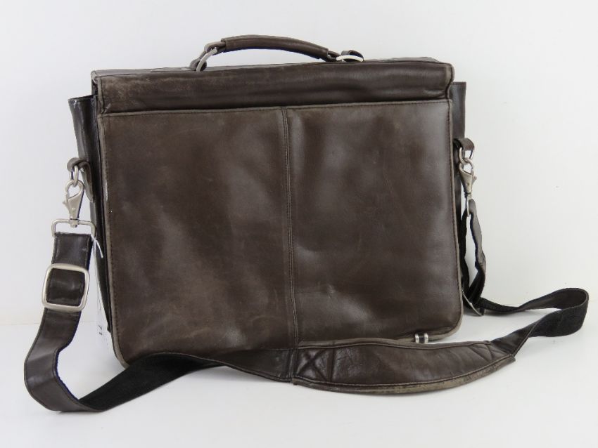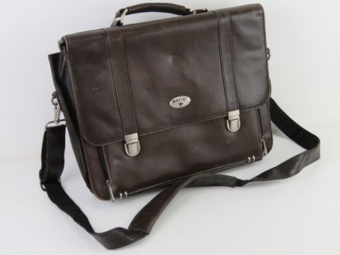 A brown leather satchel/laptop bag by Antler, approx 39cm wide.