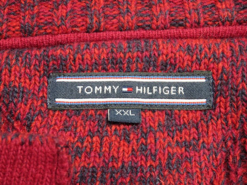 Tommy Hilfiger; a 77% lambs wool knitted jumper size XXL. Approx measurements 46" chest.
