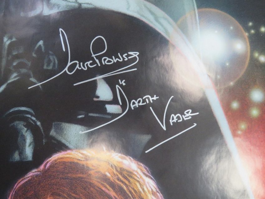 Star Wars Autographs; Episode III Revenge of the Sith poster having original trilogy and second trilogy actors signatures upon including; Dave Prowse (Darth Vader), Jimmy Bulloch (Boba Fett & Captain Colton), Kenny Baker (R2D2), Peter Mayhew (Chewbacca), Matthew Wood (Voice of General Grievous) and Ray Park (Darth Maul).