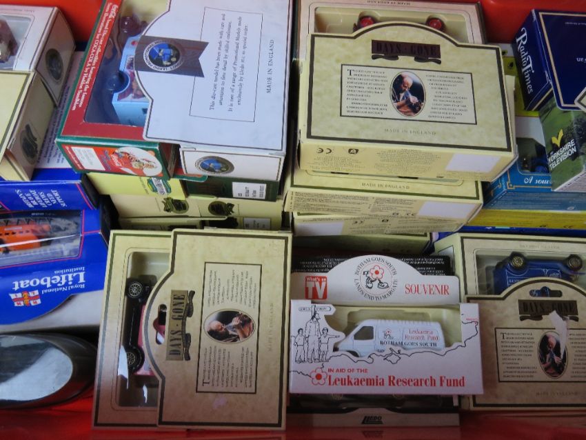 A large collection of Lledo Days Gone By vehicles inc Coca-Cola, Weetabix, Kleenex, Beano, etc, together with some other similar die cast model cars inc Mr Blobby, Smarties and RAC. Approx 70 models.
