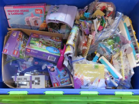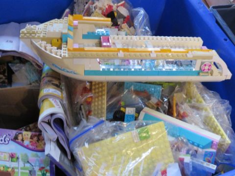 A large quantity of Lego, mostly Lego Friends, inc figures, boat, etc. In lidded plastic crate, total weight 14kg.