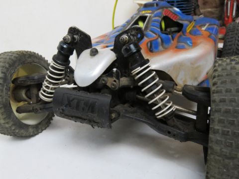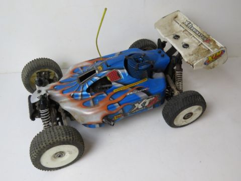 A X-Terminator 2 remote control vehicle by XTM Racing approx 50cm in length. Remote control deficient.