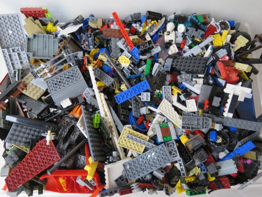 A large quantity of Lego within lidded storage box, total weight 6.5kg.