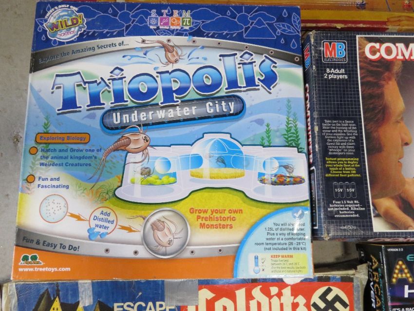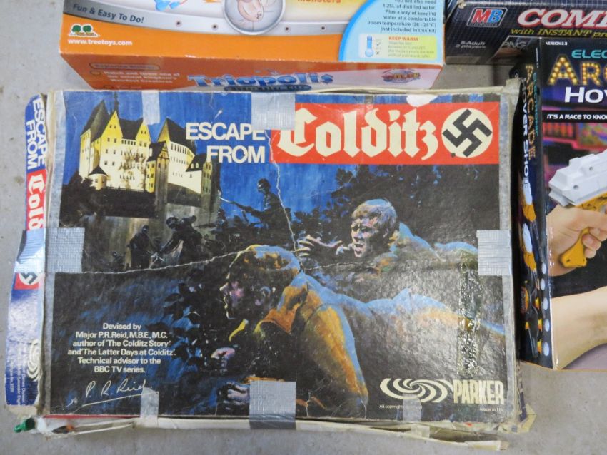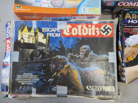 Five games inc Escape from Colditz by Parker, two cushion rebound game by Ideal, Computer Battleship, etc