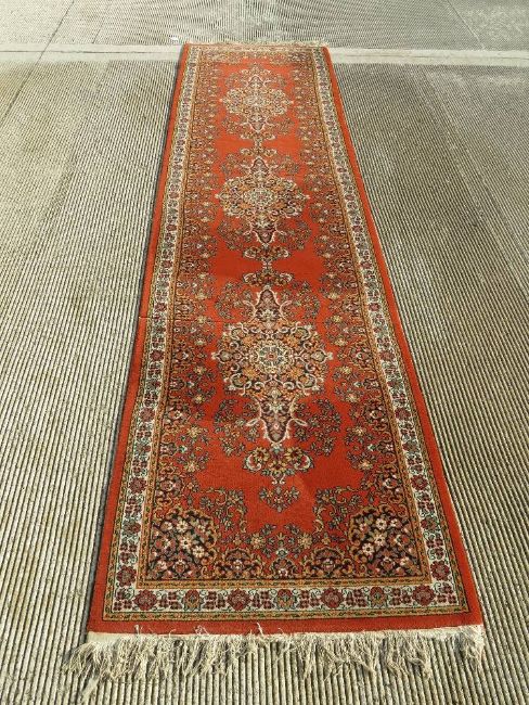An orange ground Persian runner measuring approx 320 x 80cm.