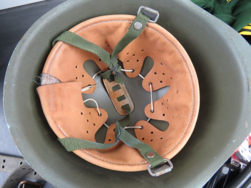 A quantity of militaria inc; helmets, Sai weapons, M1 garand sling, TA flag, air tight box, Herock Visor cap, Herock polo shirt size large, beretta bayonet scabbard, bandolier, leather belt, tool set, etc.