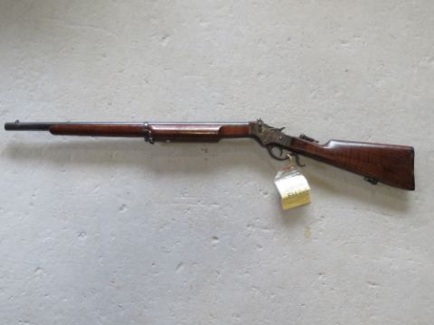 A deactivated J. Stevens Rolling Block .22 LR rifle, with heavy barrel and target sights, engraved to barrell 'J.Stevens A & T Co Chicopee Falls Mass USA Pat Apr 1794'. With EU certificate.