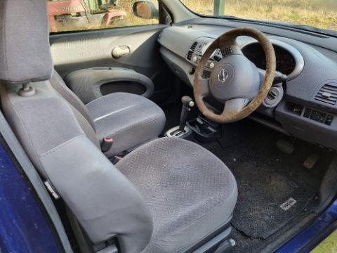 2003 Nissan Micra Petrol Automatic. Colour: Navy. Registration: KJ03 JBU. Cloth interior. With keys. V5 not present. Collection is from LE7 near Melton Mowbray 11am - 3pm on Wednesday 19th October. Payment must be received by bank transfer within three working days of the sale . All mileages are as shown on the odometer but are not warranted. All cars have been parked up for some considerable time from a deceased estate. The vehicles do not currently start or run. As such, all cars are sold as non-starters in need of recommissioning.