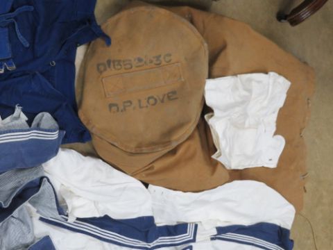 A full HMS London Naval uniform in kit bag marked for DP Love.