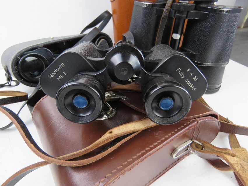 Three pairs of Binoculars, all in cases, being Noctovist MKII 8x30, Prinz 8x30 and AJAX 10x50.