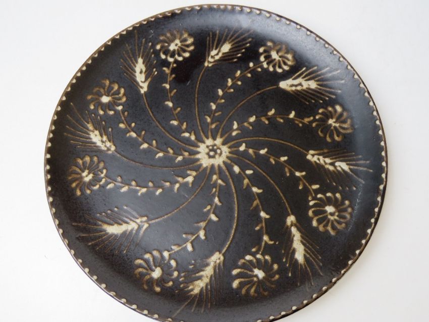 A c1970s Denby style stoneware charger in harvest type pattern, approx 33cm dia.