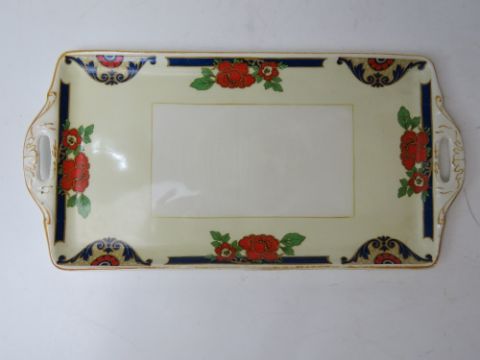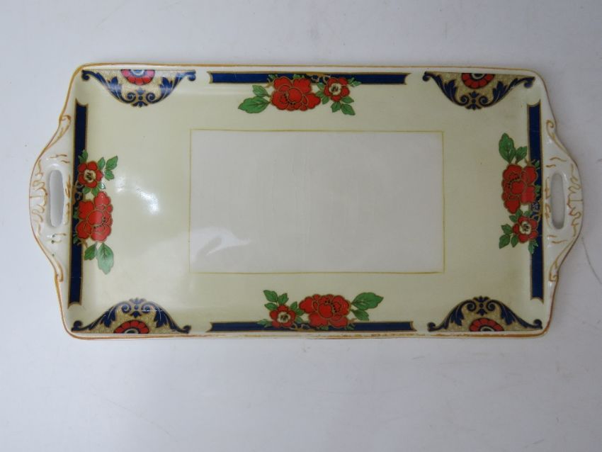 A WH Grindley & Co Ltd sandwich plate and six dishes in orange and blue floral pattern, sandwich plate approx 30cm wide.
