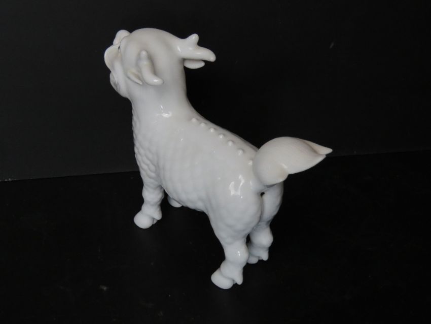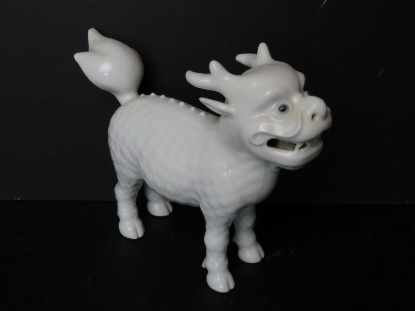 A late 19th / early 20thC Japanese Hirado porcelain figure of a Kirin - mythical creature having dragon type head with antlers upon and hooved feet. With original receipt for £160 measuring approx 17cm in length.