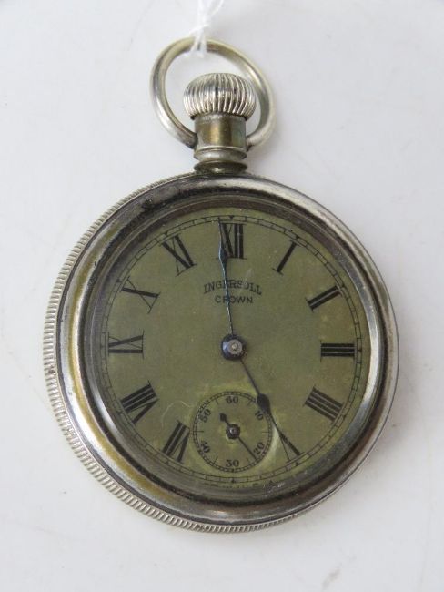 A Smiths Sectric movement and chapter ring mounted in glazed wooden frame, together with two pocket watches being an Ingersoll Crown and a Sekonda. Three items.