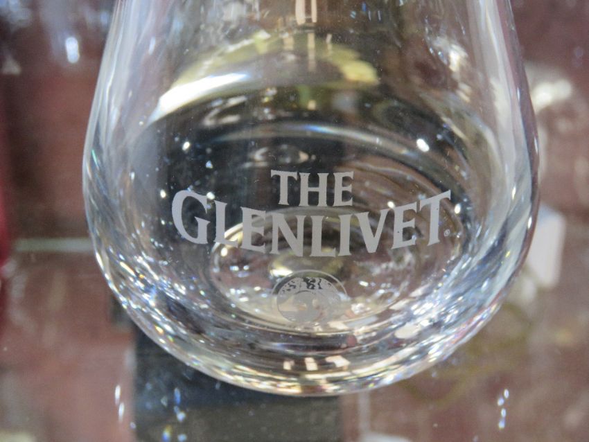 A set of five Glen Livet whiskey tumblers.