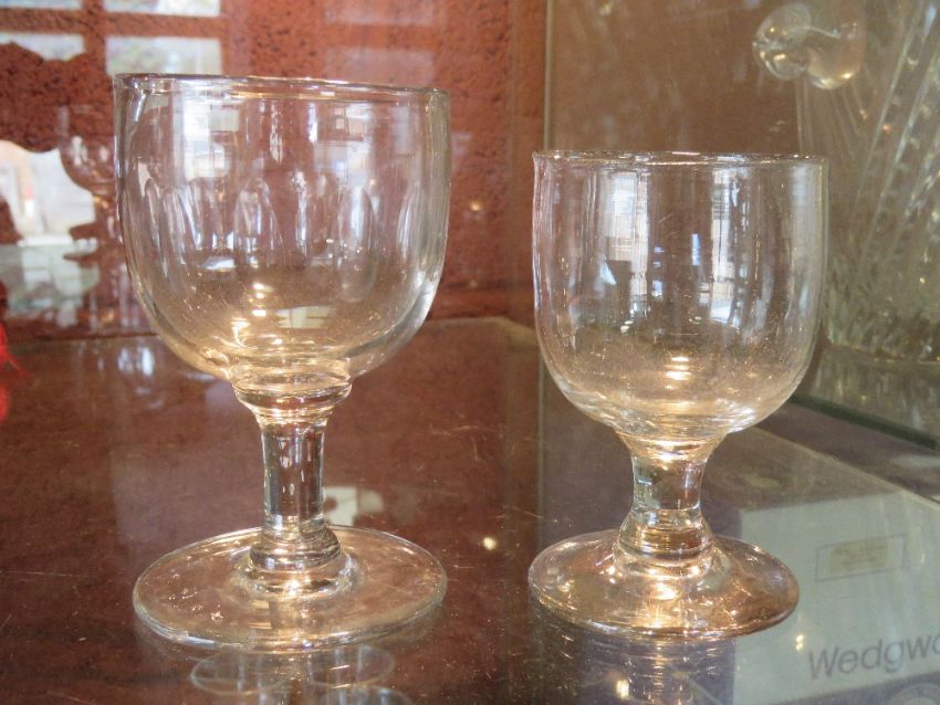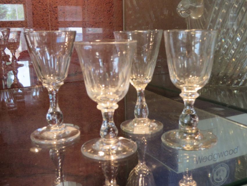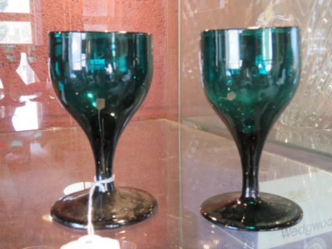 A pair of emerald green coloured glasses together with four assorted emerald green glasses. Also a large quantity of assorted clear glass liquors and goblets.