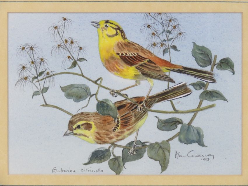 Alan Greenway; Watercolour 'Emberiza Citrinella', signed in pencil and dated 1993, sight size 24 x 17cm, framed and mounted.