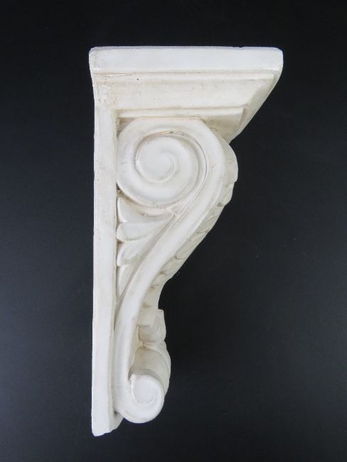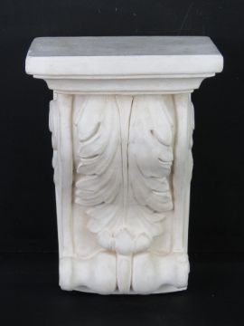 A contemporary plaster wall plinth in the classical style decorated with acanthus leaf measuring 17.5 x 13cm