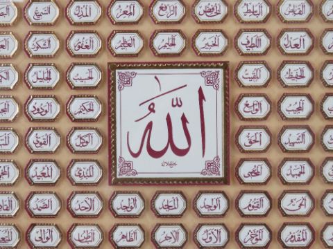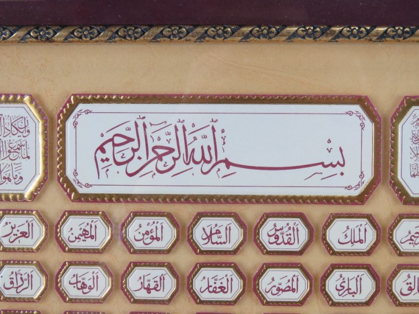 An Arabic montage, framed and glazed, sight size 32 x 40cm, framed size 56.5 x 65cm.