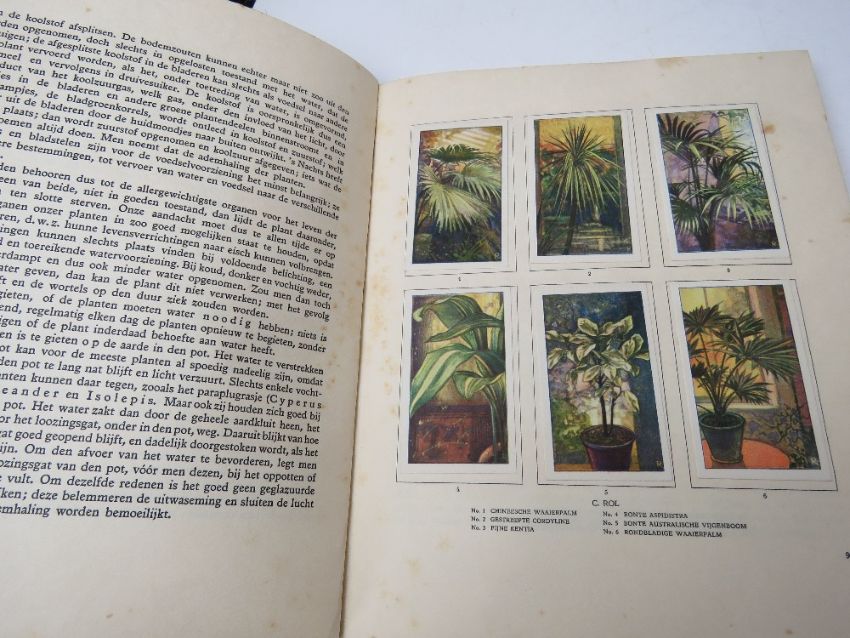 Three Dutch Art Nouveau c1920s books being Mijn Aquarium (My Aquarium), De Bloemen In Onzen Tuin (The Flowers in Our Garden) and Kamerplanten Doora J Van Laren (Houseplants by J Van Laren). Also a booklet being Onze Dieren in Woord en Beeld (Our Animals in Word and Image). Four items.