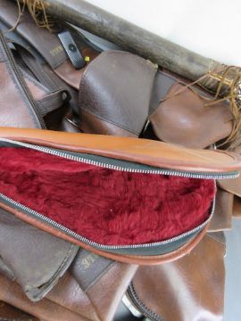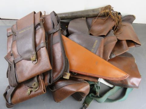 A quantity of assorted militaria inc scabbard, Parker Hale rifle cases, a pistol case and a sling.