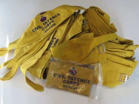 A large quantity of Civil Defence Corps rescue arm bands, British marked and dated in the 1950s.