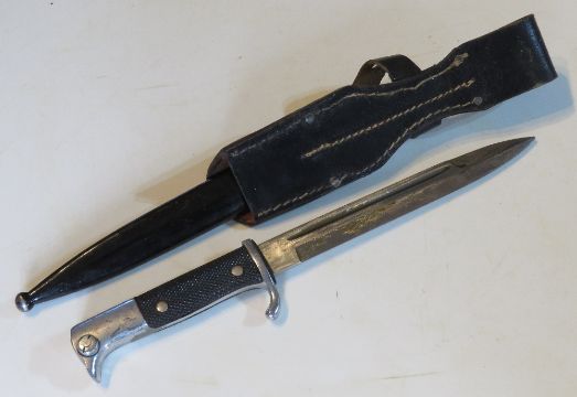 A WWII German K98 parade bayonet scabbard and frog, bearing makers mark for E.PACK & SOHNE SOLINGEN.