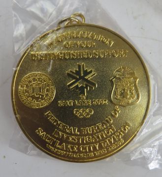 A quantity of commemorative Salt lake 2002 Federal Bureau of Investigation Salt Lake City division (FBI) medals with ribbons.