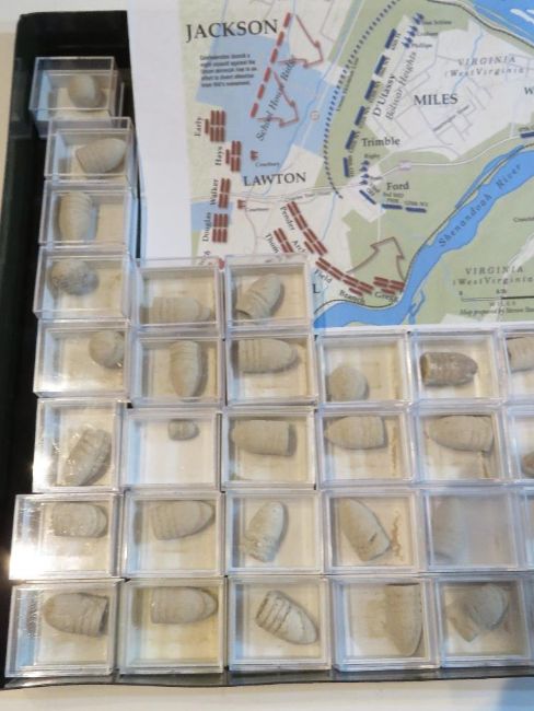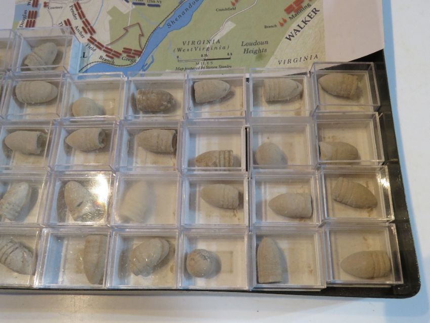 A quantity of bullets/ musket balls in boxes, believed to have been found in the area of Virginia where the siege of harpers ferry happened during September 12-15th 1862.