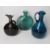 Three assorted coloured glass claret jugs, one having metal lid and cover, standing approx 10cm high.