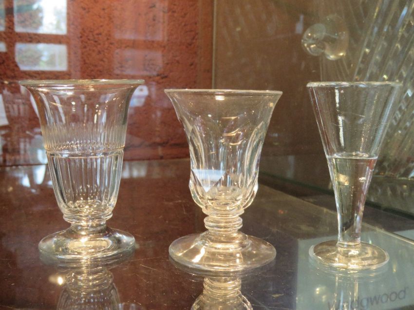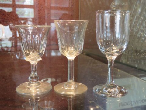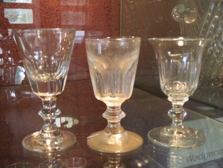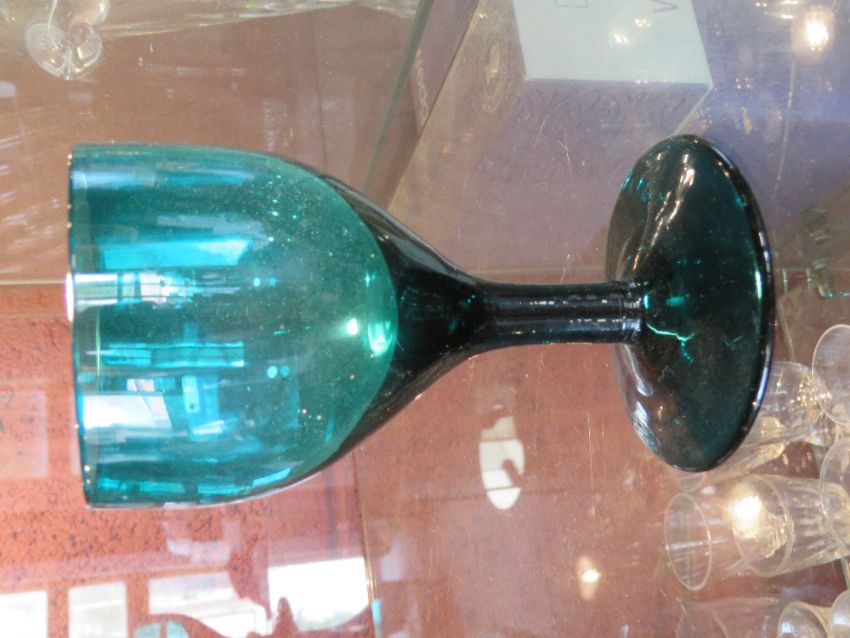 A pair of emerald green coloured glasses together with four assorted emerald green glasses. Also a large quantity of assorted clear glass liquors and goblets.