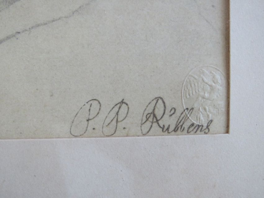Pencil portrait signed P P Rubbens featuring young child with curled hair in gilded frame, sight size 22 x 17cm, overall size 38 x 51cm.
