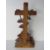 A black forest type carved wooden decorative ecclesiastical shrine having crucifix with vine leaves upon and bird to base. Measuring approx 25.5cm high.