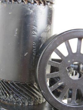 A model of a steam engine made from 'salvaged parts' inc a bike chain, approx 34cm in length.
