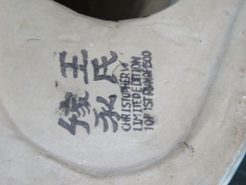 A Christopher W Limited Edition figurine of a Japanese warrior, stood on hardwood base, a/f.