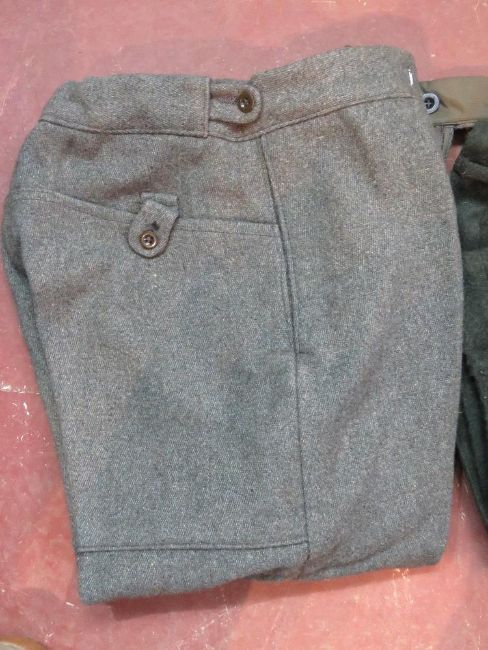 A pair of 70% wool shooting breeks size 38R, together with a pair of 60% wool tweed shotting breeks, a pair of Airguard shooting breeks and a pair of 100% cotton shooting breeks. Four items.