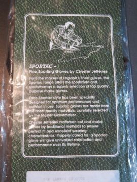A pair of Chester Jeffries Sportac Lammie Shooter suede napper lambskin open gloves.