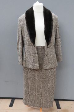 A ladies skirt suit by Alexon 97% wool, jacket size 12, skirt size 10. Jacket approximate measurements 40" chest, 27.5" length to back, 15" underarm sleeve. Skirt approximate measurements 30" waist, 30" length.