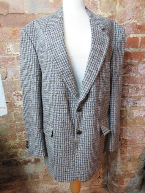 A Harris Tweed 100% wool men's jacket, 44" chest in green and blue tweed.