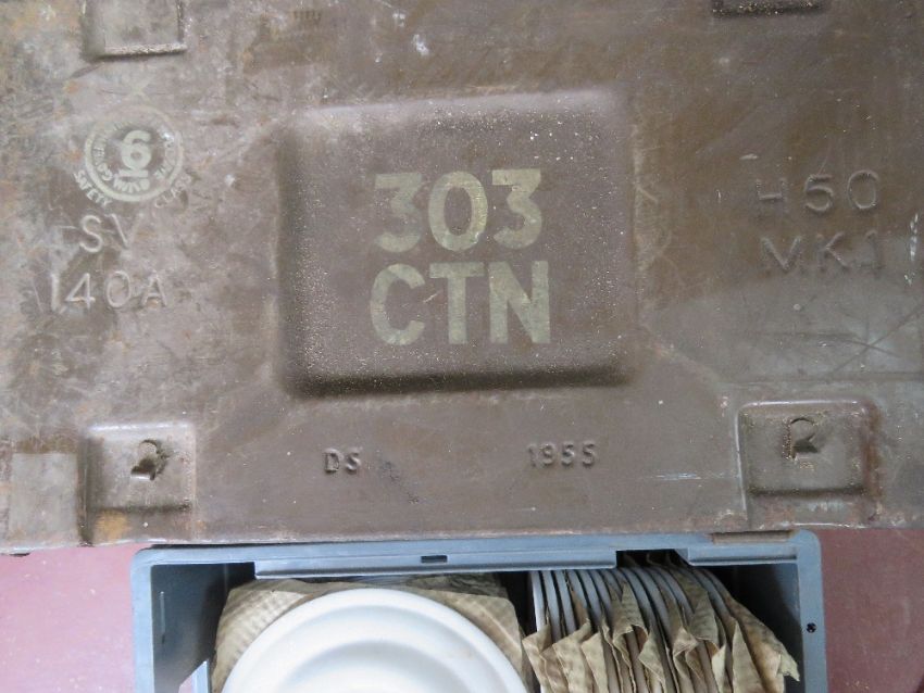 A large quantity of British Military c1960s Officer's Mess plates, having broad arrow tin, partially contained within British ammo tin.