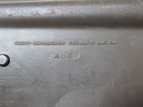 A deactivated Steyr AUG 5.56mm assault rifle. Latest EU Spec, with working optical sight, moving trigger, safety, cocking handle (under spring pressure and removable mag. With certificate.